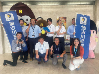 兵庫県加古川警察署が食品メーカー「オーマイ」(加古川市平岡町)と特殊詐欺被害防止の啓発シールを製作し、9月11日、同社の商品にシールを貼り付け、JR加古川駅前で配布した。