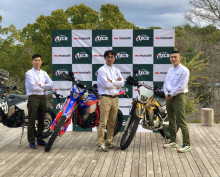 センサーライトメーカー「ムサシ」(加古川市八幡町)が3月7日、「アジアクロスカントリーラリー(AXCR)2026」バイク部門に出場する「チームムサシ」結成の記者会見を開いた。
