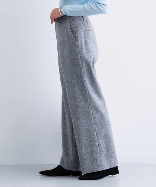 のパターン。日本国内で紡績されたリサイクルウールを使用し、環境に配慮したストレッチツイード素材で快適なはき心地を実現しました。