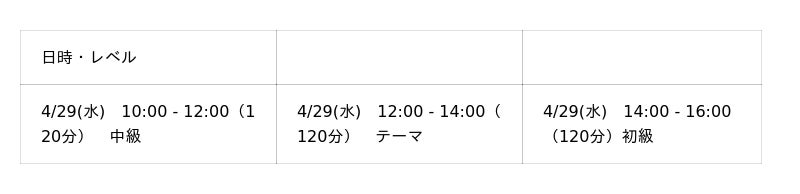 日程|4月開催予定(後半)