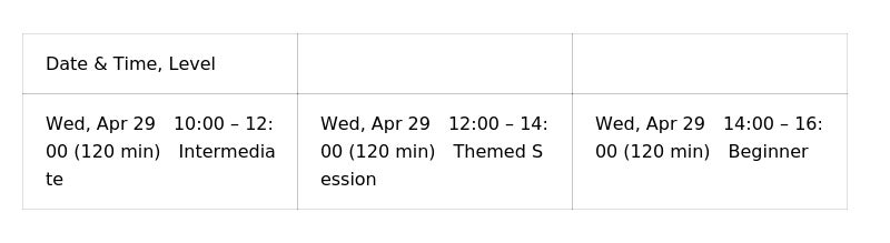 Schedule| Late April Sessions